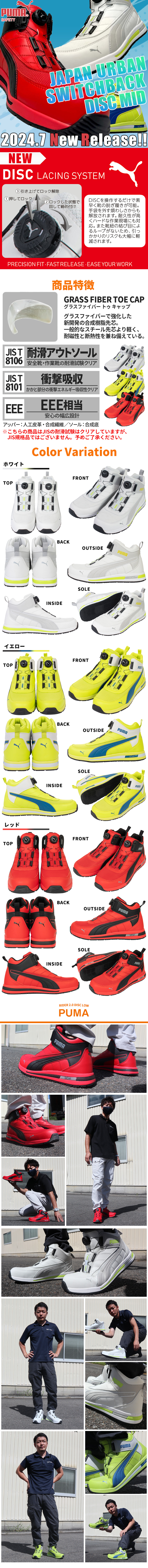 安全靴 ハイカット プーマ PUMA 新作 スイッチバック ディスク ミッド SWITCHBACK DISC MID 新商品 2024年 ダイヤル式 プロテクティブスニーカー 作業靴 メンズ 男性用 衝撃吸収 ストリート カジュアル かっこいい おしゃれ 建築 建設 運送 工場 25.0~28.0c