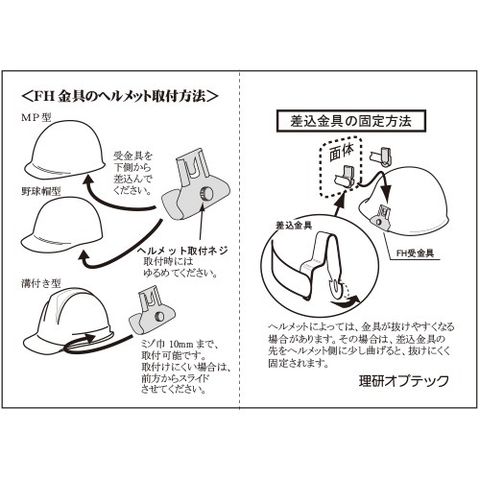 ヘルメット取付型保護シールド 理研オプテック 安全帽取付 FH 受金具 1組(2個セット) 防災面
