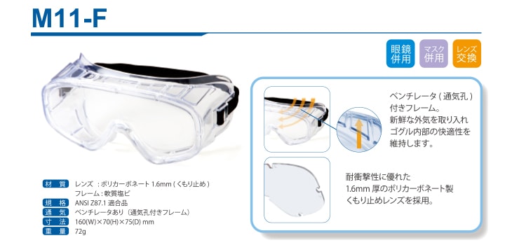 | めがね併用可、レンズ交換可、マスク併用可、曇止め |