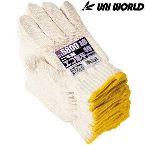 作業用軍手 ユニワールド エコ軍手 綿特紡2本編み 12双×10セット(120双入り) 5800