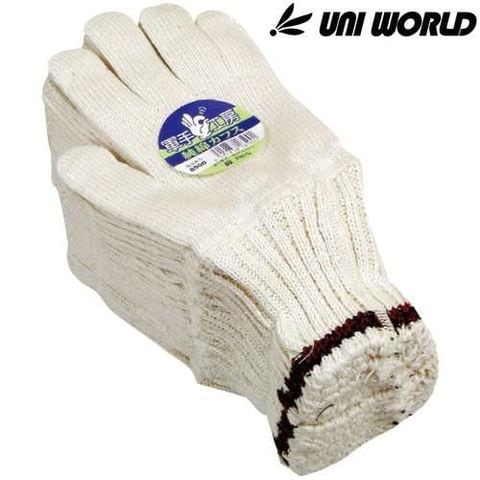 作業用軍手 ユニワールド 純綿カフス 純綿糸5本編み 12双×10セット(120双入り) 8500