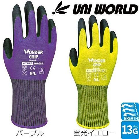 背抜き手袋 ユニワールド ワンダーグリップ ブレス WONDER GRIP Breath 1双 WG501