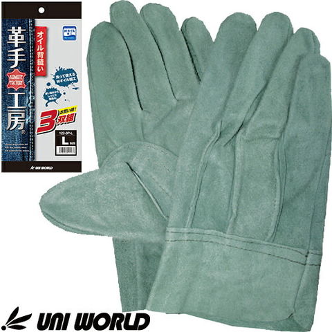 牛床革手袋 ユニワールド 牛床革 オイル背縫い スタンダード 3双組 122-3P 総革製