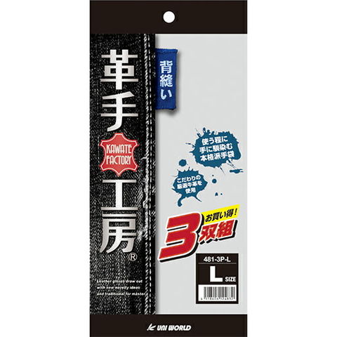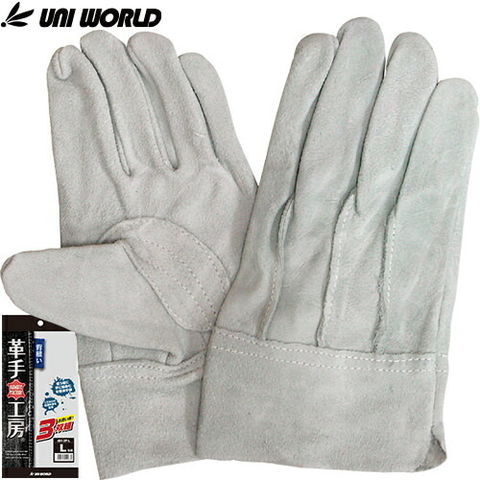 牛床革手袋 ユニワールド 牛床革 背縫い スタンダード 3双組 481-3P 総革製