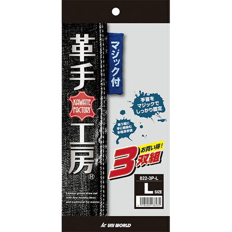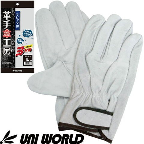 牛床革手袋 ユニワールド 牛床革 マジック スタンダード 3双組 822-3P 総革製