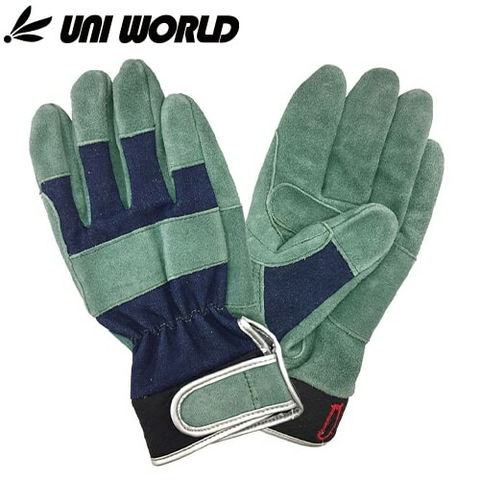 【メール便対応】牛床革手袋 ユニワールド 指先の極 背抜きオイルマジック フックホール KS857 甲メリヤス(甲側布製)