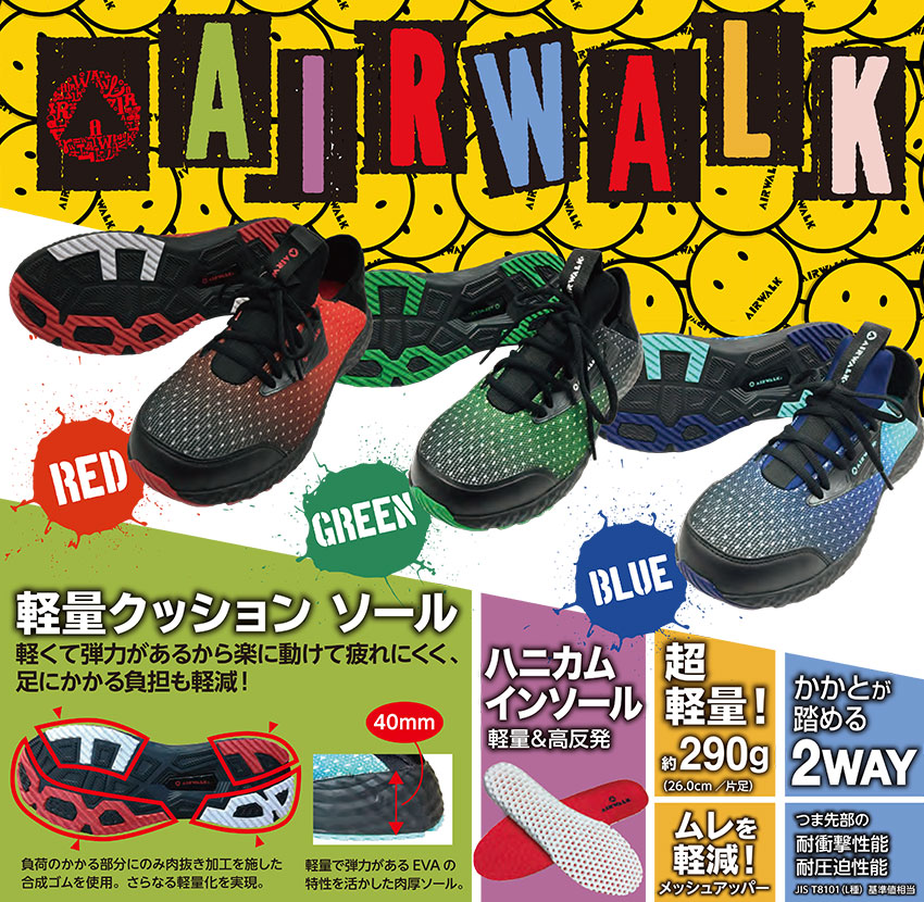 安全靴 ユニワールド AIR WALK エアウォーク フレックスフィット AW-910、AW-920、AW-930 紐靴 スニーカータイプ