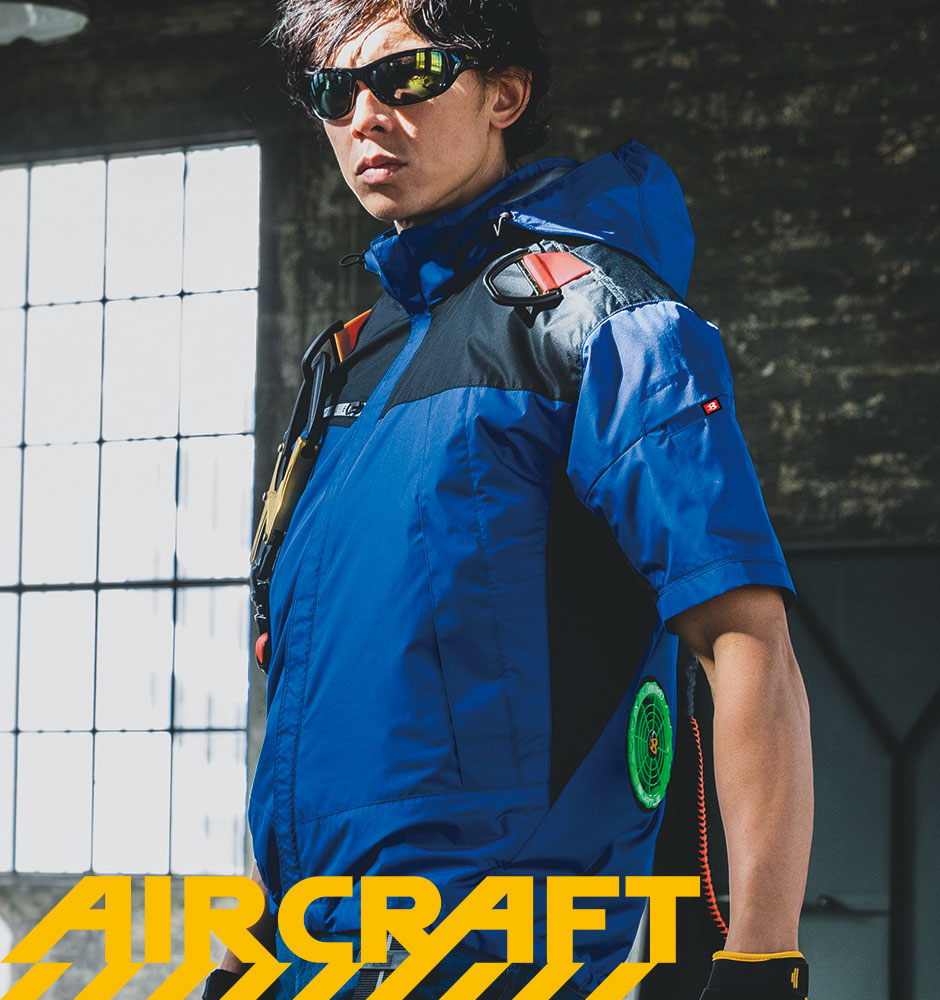 現在空調服(R)という用語が世間で使用されておりますが、本来「空調服(R)」とは株式会社空調服が夏場の衣服内気候環境を改善することを目的として発売している「電動ファン内蔵上着」の商品名ですので、こちらの商品は「空調服(R)」ではなく、同じような効果を目的として株式会社空調服以外のメーカーより発売されているEFウェア(電動ファン付きウェア)シリーズでございます。