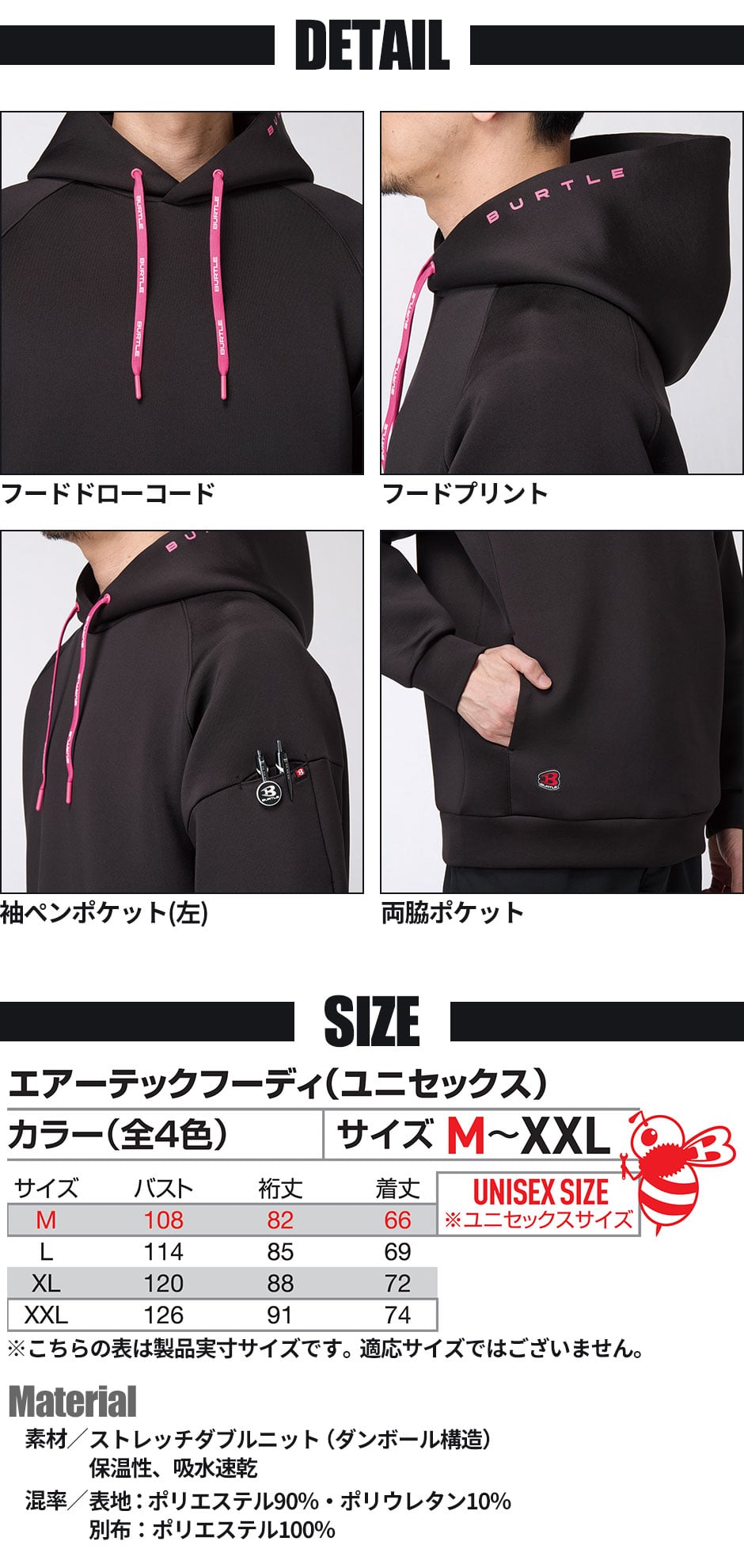[即日発送]バートル BURTLE エアテックフーディ 4095 トレーナー 長袖 作業着 通年 秋冬 ストレッチ 吸汗速乾 男女共用 おしゃれ かっこいい 人気 ダンボールニット パーカー ワーク アウトドア タウンユース フード付き スポーツ トレッキング 登山 ジョギング 筋トレ