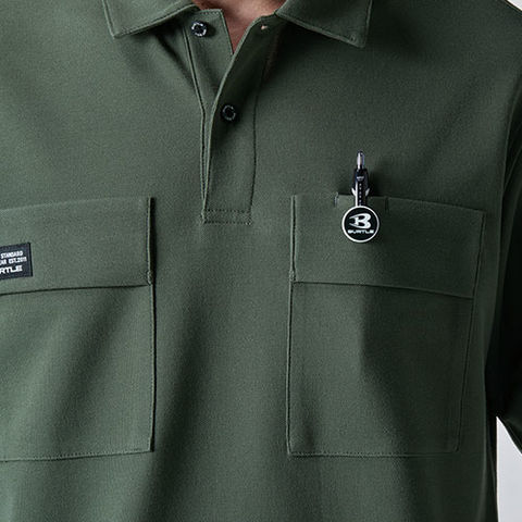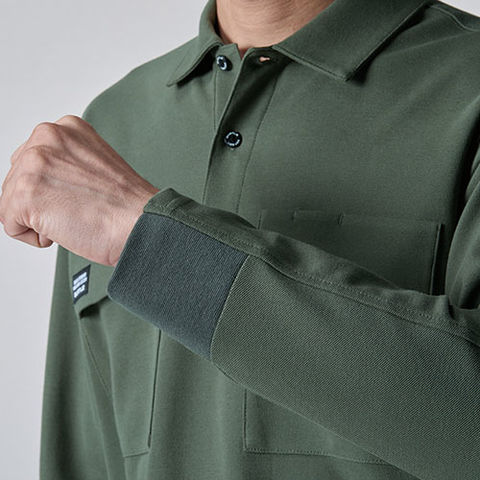| ●耐久性と吸水性に優れた綿高率混の肉厚鹿の子素材 ●両胸と袖に便利な収納ポケットを装備 ●不快なニオイを抑える消臭テープを装着 ●男性ユニセックスの着用に対応 |