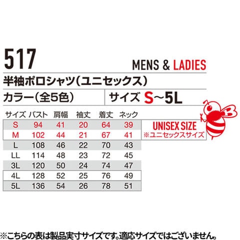 | ※S・Mはユニセックスサイズです |