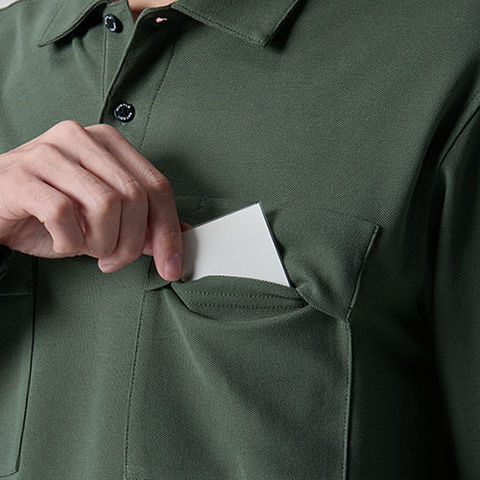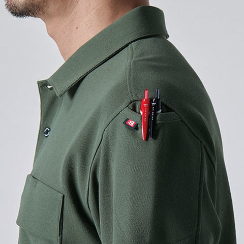 | ●耐久性と吸水性に優れた綿高率混の肉厚鹿の子素材 ●両胸と袖に便利な収納ポケットを装備 ●不快なニオイを抑える消臭テープを装着 ●男性ユニセックスの着用に対応 |
