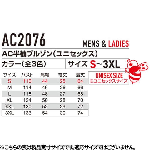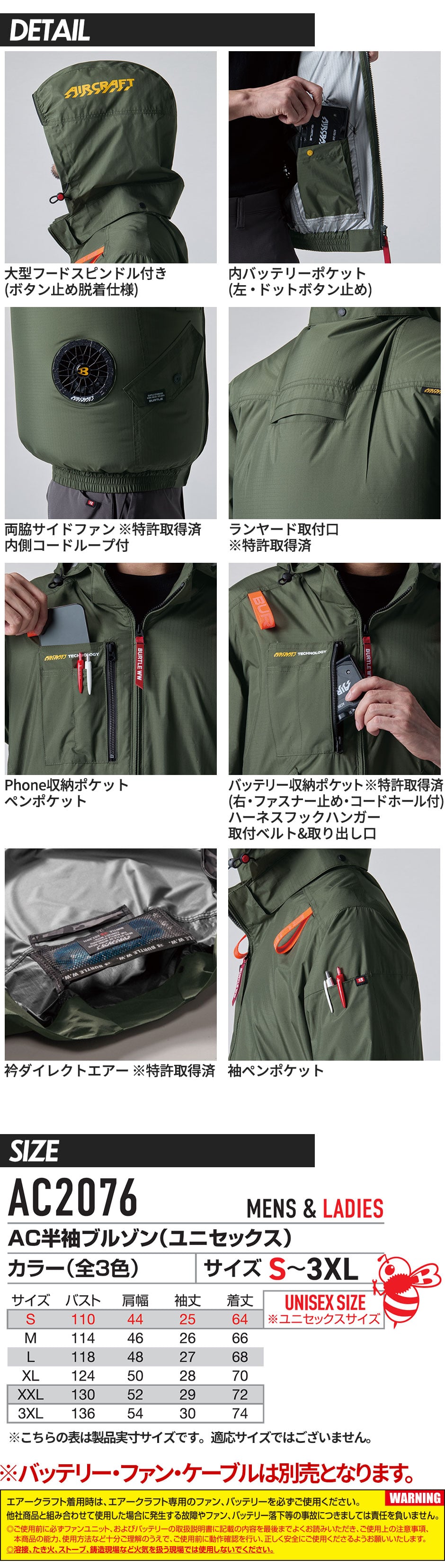 | ※リチウムイオンバッテリー、ファン、ケーブル等は別売りです。 ※Sはユニセックスサイズです。 |