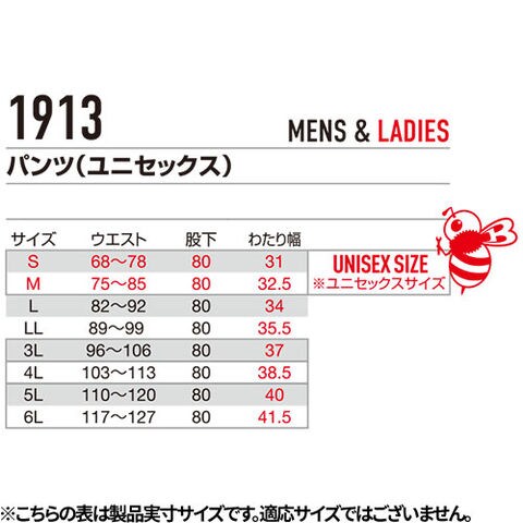 | ※S・Mはユニセックスサイズです |