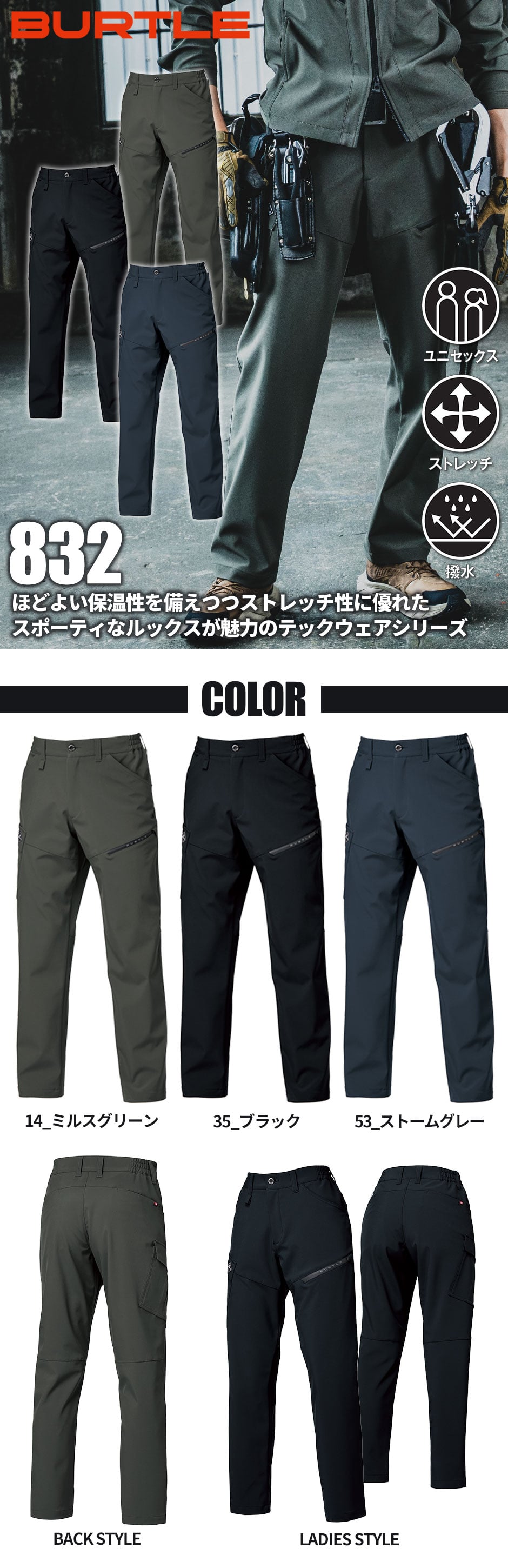 [即日発送]バートル BURTLE ワイドカーゴパンツ 832 通年 秋冬 作業着 メンズ ワーク マン 作業服 カーゴパンツ ストレッチ 人気 流行 丈夫 おしゃれ かっこいい 建築 おすすめ 企業 法人 作業 工場 外作業 制服 ユニフォーム 仕事 土木 工事 現場 男女兼用 建設業 DIY 大
