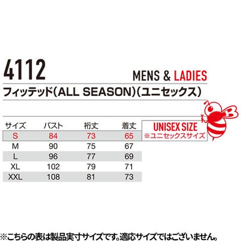 | ※Sはユニセックスサイズです |