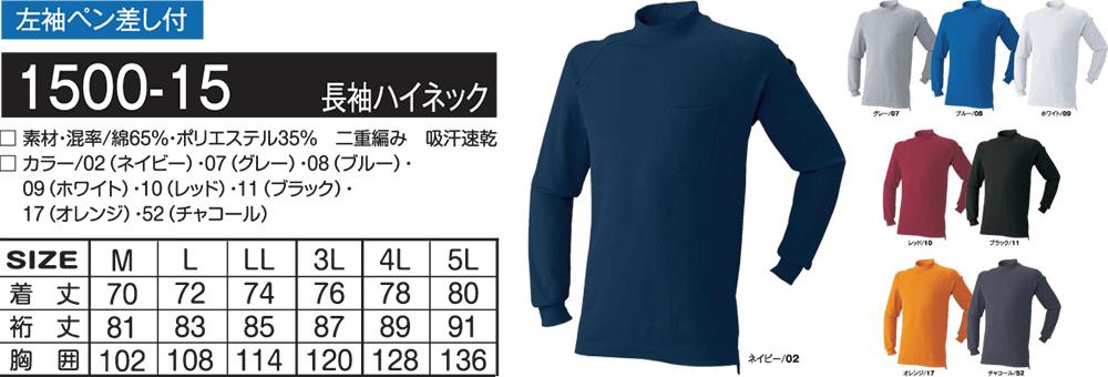 | 二重編み、吸汗速乾、左袖ペン差し付 |