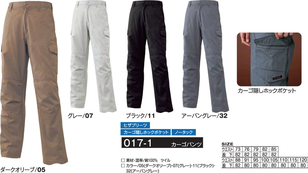 アタックベース 017-1 カーゴパンツ メンズ 秋冬 通年 ATACK BASE 作業服 作業着 ポケット付き おしゃれ かっこいい 人気 ズボン 作業ズボン 作業パンツ 作業 工事 土木 塗装 DIY diy