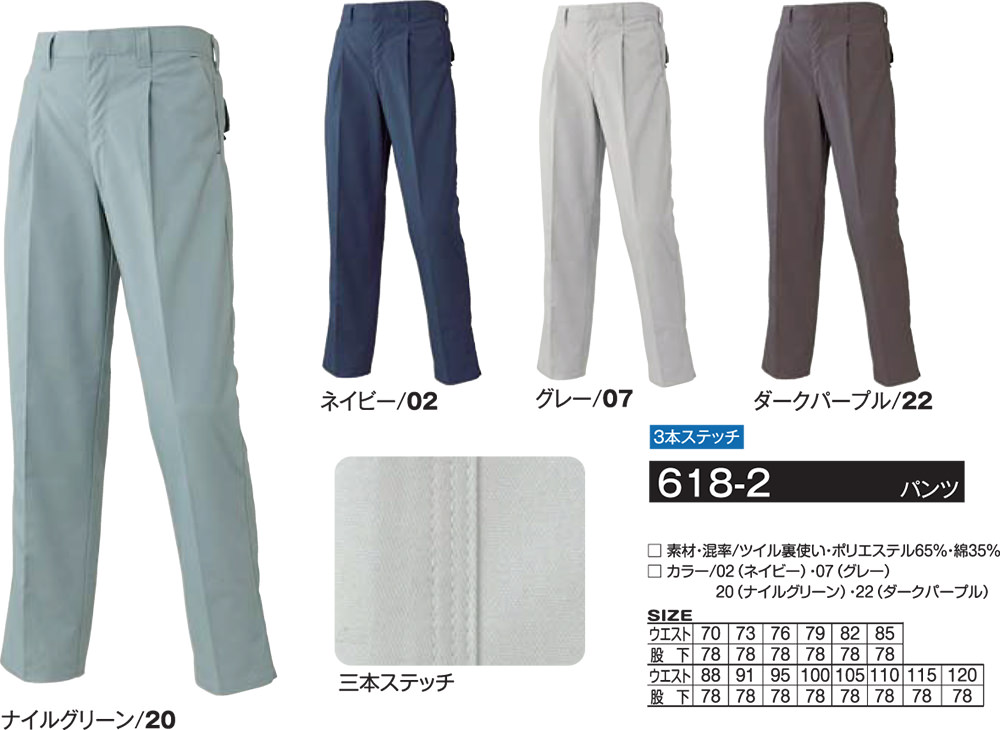 アタックベース 618-2 パンツ メンズ 秋冬 通年 ATACK BASE 作業服 作業着 腿ポケット無 ボトムス スラックス 作業ズボン 作業パンツ ワークパンツ ズボン おしゃれ かっこいい オフィス ユニホーム 作業 軽作業 外作業 工場 現場