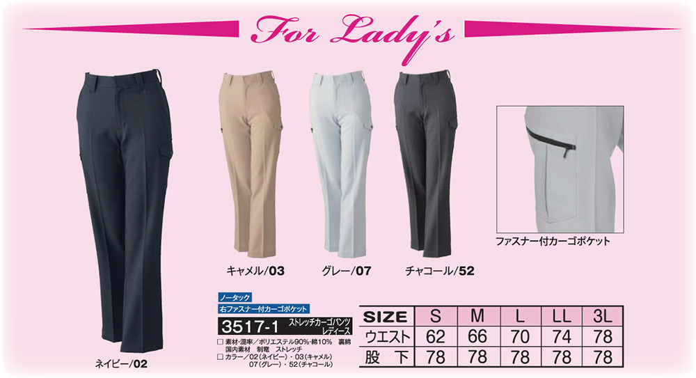 アタックベース 3517-1 レディースカーゴ レディース 秋冬 通年 ATACK BASE 作業服 作業着