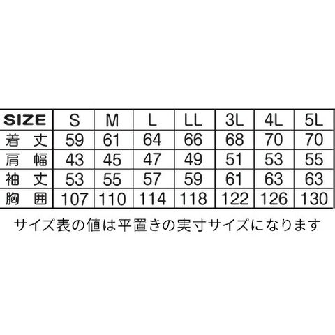 | サイズ表の表記は製品を平置きにて外側を計測した製品実寸サイズとなります 防寒ウエア等をお求めの際は特にご注意をいただけますようお願い申し上げます |