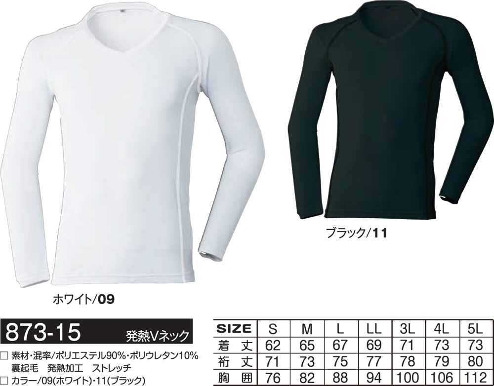 防寒 インナー メンズ 冬 アタックベース 873-15 発熱Vネック 防寒ウェア ATACK BASE 長袖シャツ 暖かい おしゃれ アウトドア 人気 男性 作業着 作業服 防寒着 作業 秋冬 汗 冬用インナー ゴルフ 釣り スポーツ 大きいサイズ