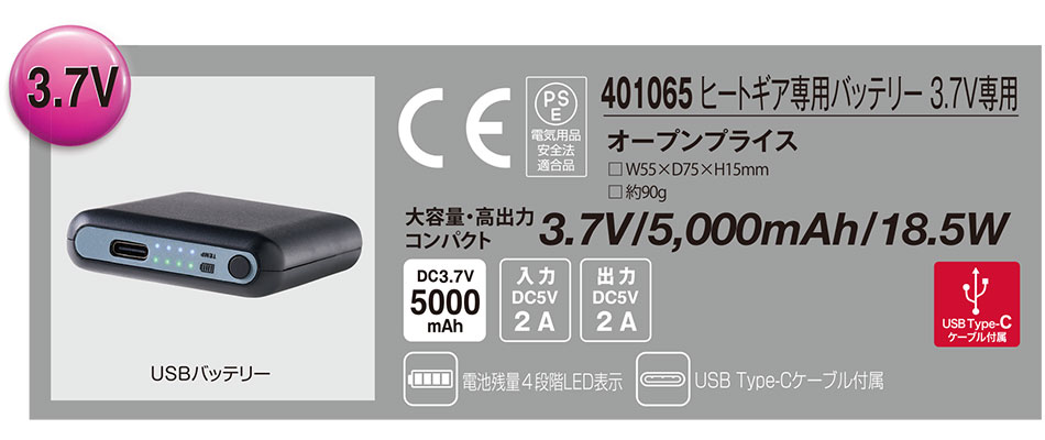 | 401065 ヒートギア専用バッテリー3.7V 2台、2股充電用USBケーブル(長さ 25cm) |