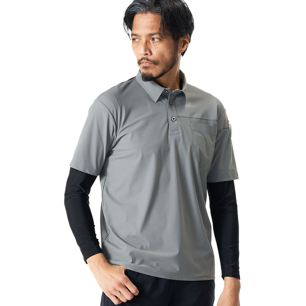 | クールタッチな着心地が嬉しいレイヤードポロシャツ レイヤード構造により重ね着風のスタイリングが1枚で完結 優れたストレッチ性であらゆる動きをサポート |