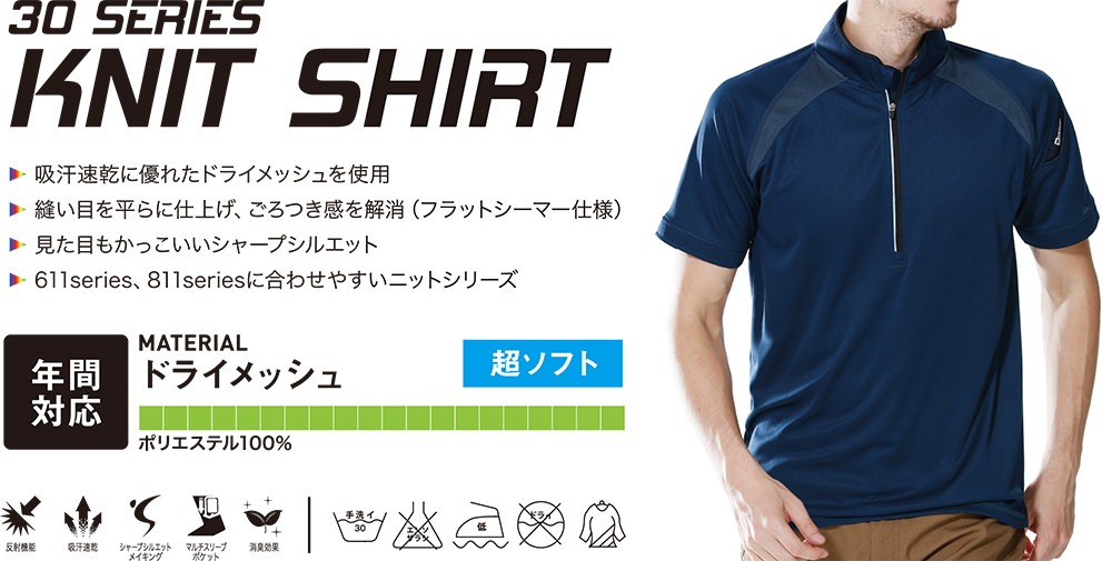 吸汗速乾、シャープシルエットメイキング、マルチスリーブポケット、消臭機能、反射プリント