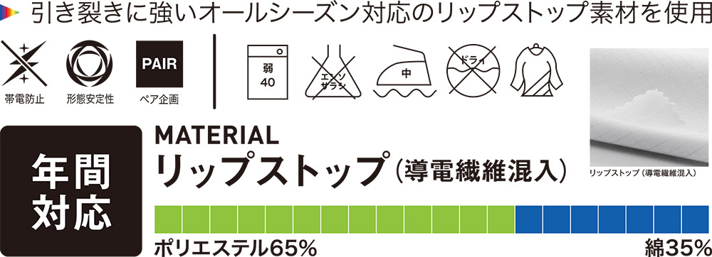 | ストレッチ、日本製、形態安定性、帯電防止素材、男女ペアシリーズ |