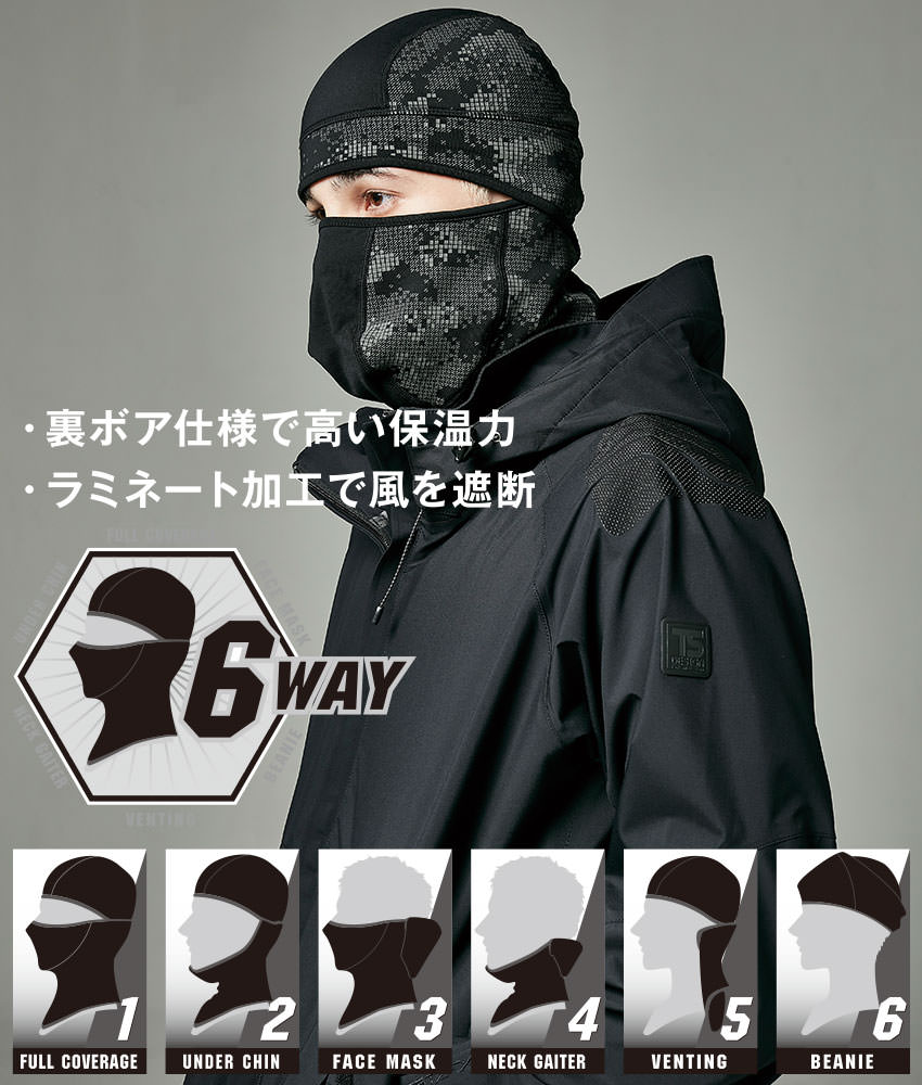 バラクラバ プレミアム フェイスマスク(6WAYフェイスガード) メンズ レディース フェイスカバー フェイスガード バイク ツーリング スキー 登山 キャンプ 作業用 防風 保温 TS Design 藤和 82290