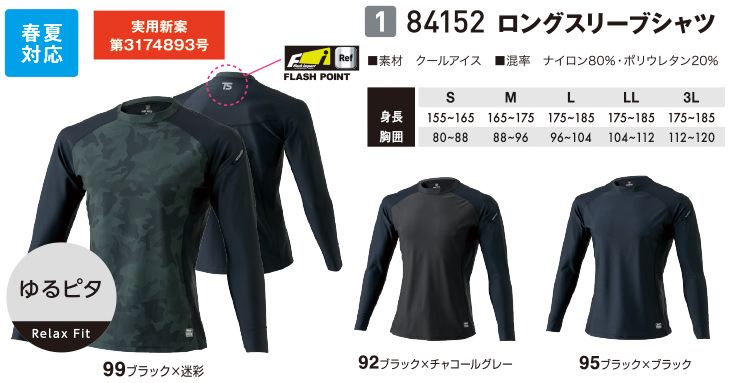 インナー 長袖 藤和 TS Design ロングスリーブシャツ 84152 夏用 涼しい クール 夏用インナー 長袖シャツ