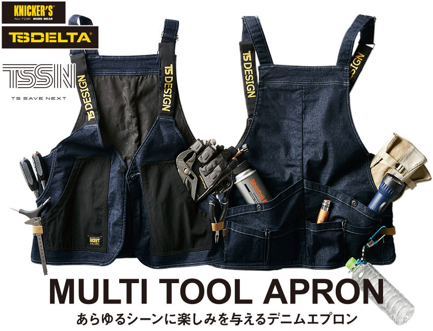前掛け エプロン 藤和 TS Design TS DELTA マルチツールエプロンベスト 5138 ストレッチ 洗い加工 収納力 ポイントが大きい