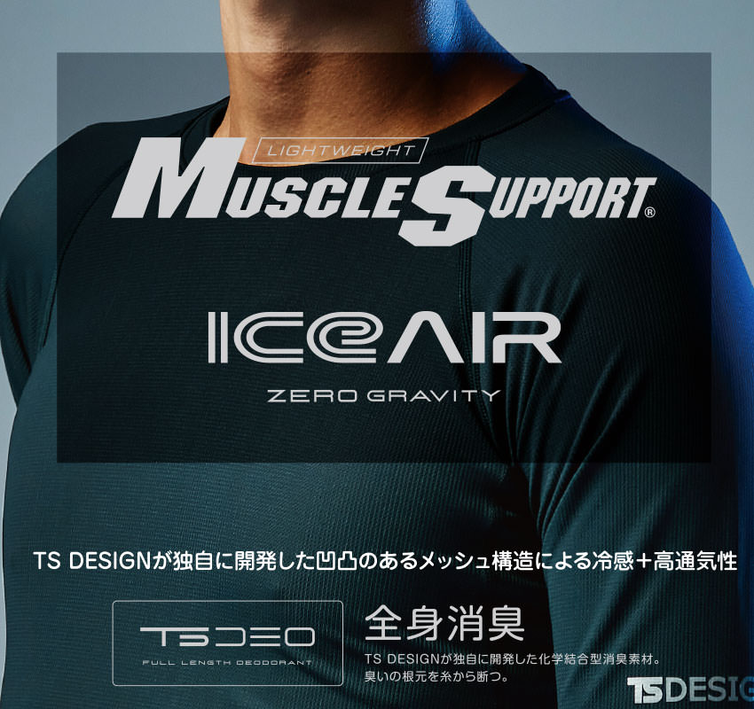 無重力インナーの夏版。ドライな着心地にTSが独自開発した化学結合型消臭素材による全身消臭も装備。