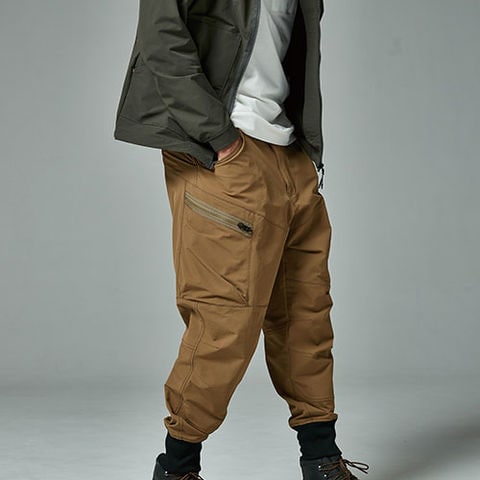 | ・強度とストレッチ性(経:27.4%、緯:15.6%)を併せ持つ ・縫製糸により静電気もケアしている ・二重織組織により肌面が点接触で快適に着られる ・リブ長10cm ・カーゴパンツの左側にはフラップ付きのポケットを採用。貴重品等の落下を防ぐ。ロゴプリントはラバープリントを採用している点もアクセントとなっている。 ・右側に小物を収納できるファスナーポケットを採用し、貴重品等を収納して落下も防いでくれる。 |