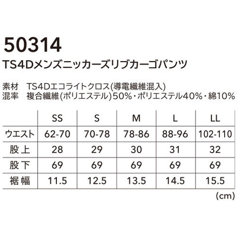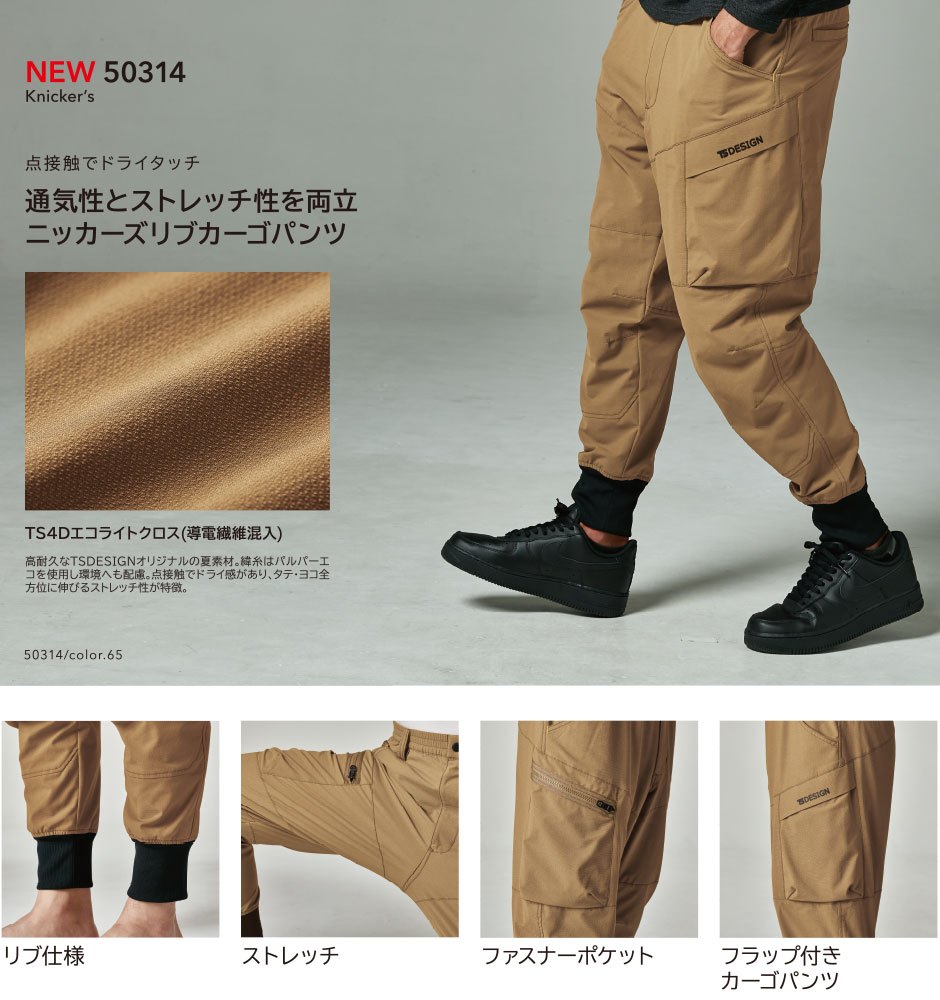 作業服 カーゴパンツ 藤和 TS Design TS4Dメンズニッカーズリブカーゴパンツ 50314 作業着 春夏 ストレッチ 帯電防止 裾リブ ウエストゴム カッコいい おしゃれ