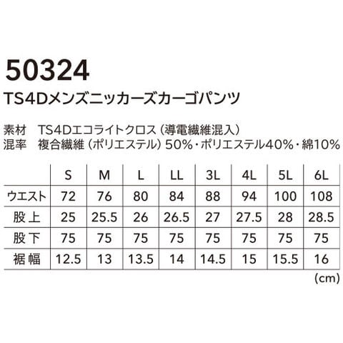 作業服 カーゴパンツ 藤和 TS Design TS4Dメンズニッカーズカーゴパンツ 50324 作業着 春夏 ストレッチ 帯電防止 裾リブ ウエストゴム カッコいい おしゃれ