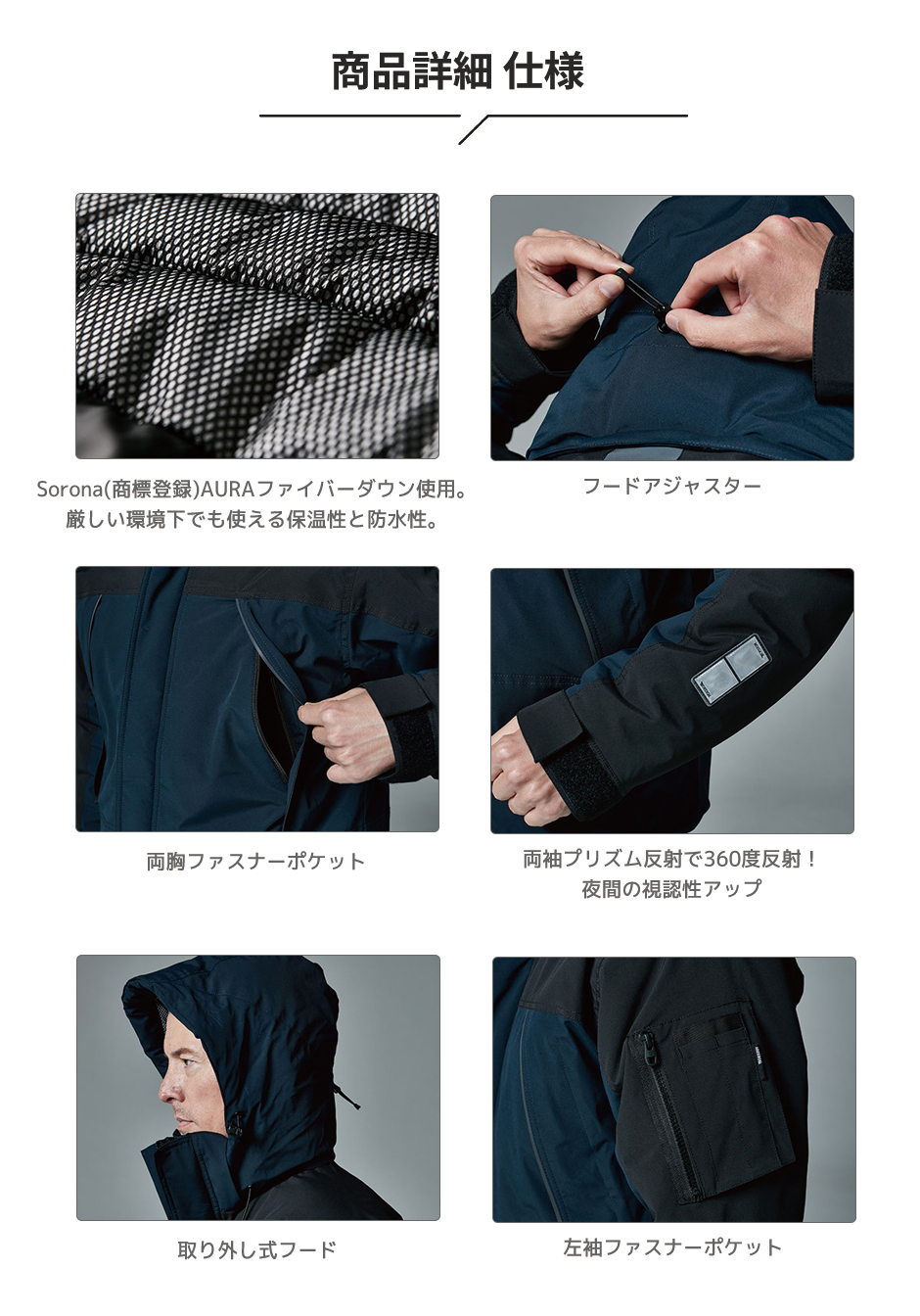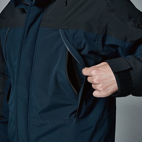 | ・Sorona(商標登録)AURAファイバーダウンを使用 ・フルハーネスや腰道具の着用を想定した設計 ・ロゴ入りドットボタン ・裾リブ仕様で外気の侵入を防ぐ ・防風性を高める前立て仕様 ・両側内ポケット付 ・初期撥水 ・縫製糸による静電気ケア |