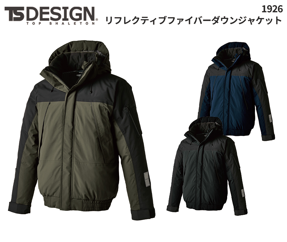 [フルハーネス対応] 作業服 ジャンパー 防寒 暖かい ダウン 黒 ストレッチ シンプル 無地 上着 男女兼用 藤和 TS Design リフレクティブファイバーダウンジャケット 1926 作業着 通年 秋冬 大きいサイズ 3L 4L 5L 6L ブラック ゆったり