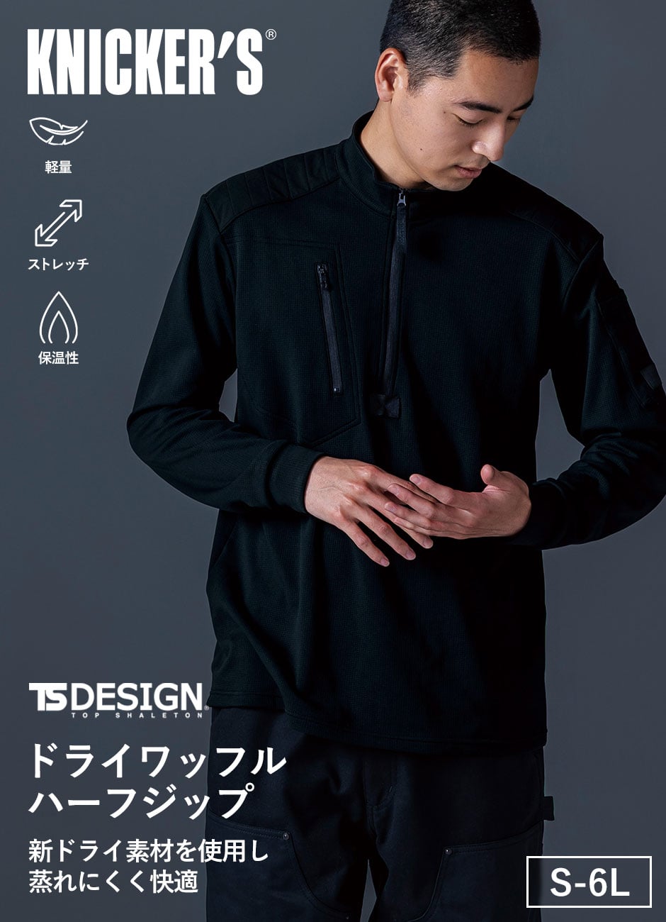 現場仕様の蒸れにくいワッフルハーフジップ