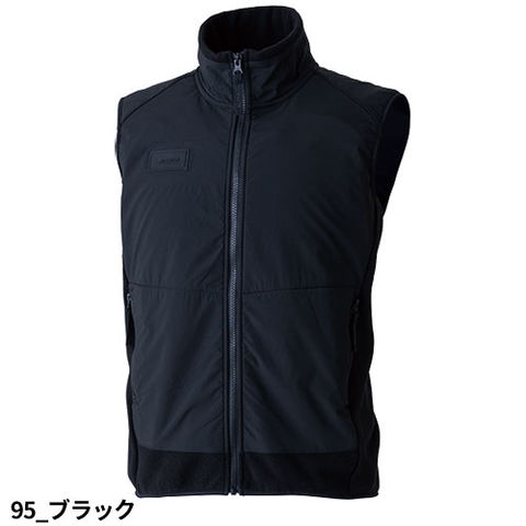 | ワークシーンでも安心して着用できるようにダメージを受けやすい箇所に強度の高い布帛を使用したハイブリッドデザインのフリースベスト 両脇に縦ファスナーポケットを採用し、収納力を確保している。 フロントファスナーには立体シリコンプリント入り引き手、右胸にはシリコンワッペン付き |