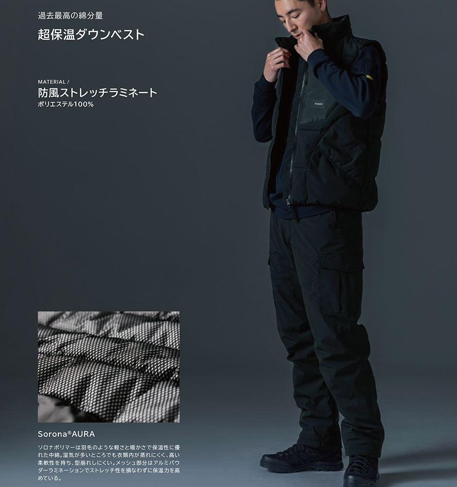 Sorona AURAファイバーダウンによる超保温ダウンベスト