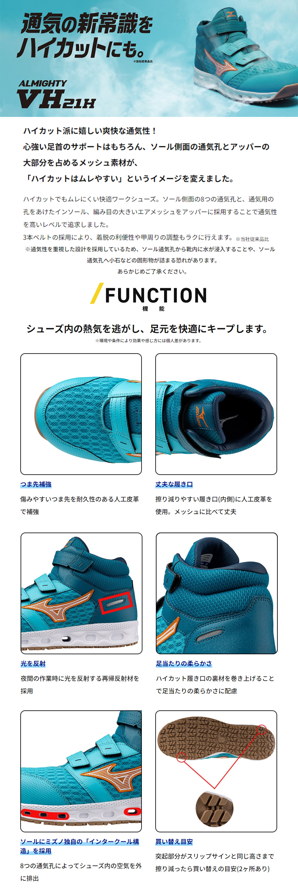 安全靴 ミズノ ハイカット MIZUNO オールマイティ VH21H ベルト ベルトタイプ 新作 新商品 スニーカー メンズ レディース JSAA規格 メッシュ 樹脂先芯 抗菌 防臭 おしゃれ かっこいい 滑りにくい 疲れにくい スニーカー 通気性 軽量 2024年 倉庫業 運送業 運輸業 24.5