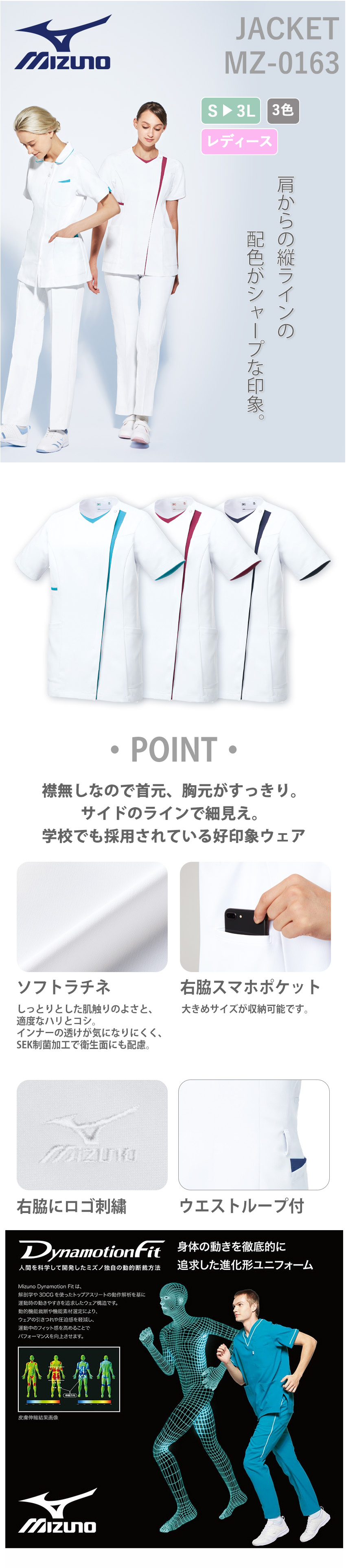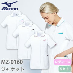 ジャケット 白衣 ケーシー チュニック MZ-0163 医療 ミズノ MIZUNO レディース 女性用 半袖 医師 医者 看護師 ナース 医療用 人気 病院 病院実習 上衣 医務衣 診察衣 動きやすい 丈夫 制菌 可愛い かわいい おしゃれ