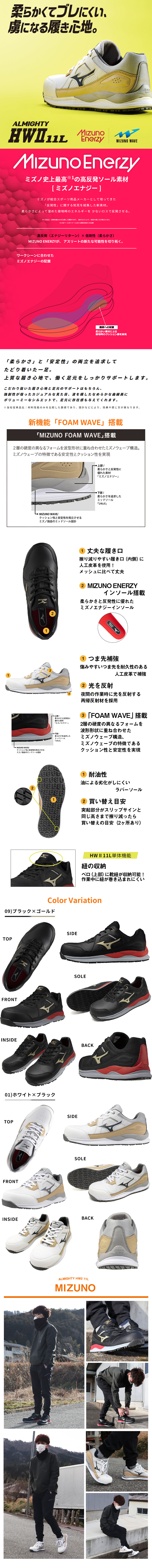 安全靴 ミズノ MIZUNO オールマイティ HW2 11L Ltd 新作 限定カラー 限定 新商品 紐靴 JSAA 作業靴 メンズ レディース かっこいい おしゃれ 軽量 耐滑 軽量 樹脂先芯 疲れにくい 人工皮革 2024年 スニーカー ローカット 白 黒 F1GA2400 建築 建設 倉庫業