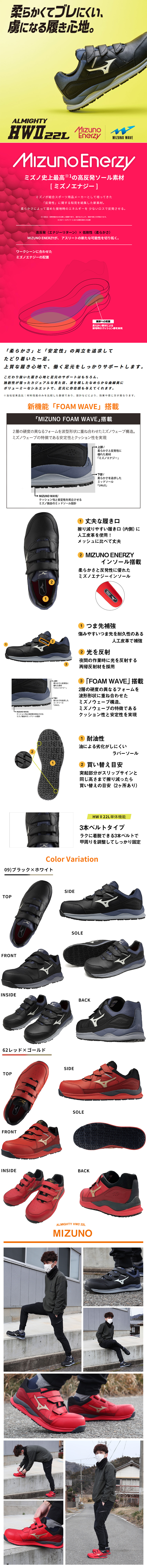 安全靴 ミズノ MIZUNO ALMIGHTY HW2 22L オールマイティ HW2 22L Ltd 新商品 マジックテープ JSAA規格 メンズ レディース 作業靴 限定 限定カラー マジック ベルト かっこいい おしゃれ 軽量 蒸れにくい 疲れにくい 耐滑 スニーカー