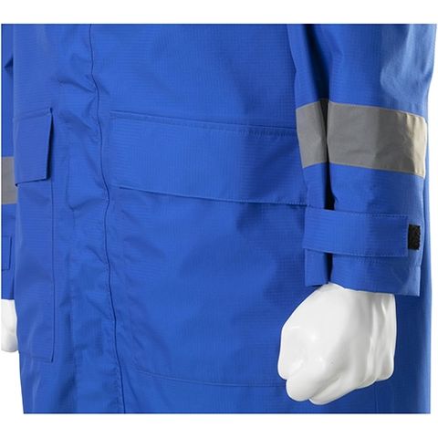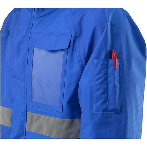 | 働く方向けにつくられたワーキング用レインコート。ポケットや反射材は現地の声を盛り込んだ耐久撥水生地のレインウェア 100回洗濯しても撥水性を維持 |