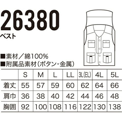 作業 着 綿100 ベスト 作業服 ワークベスト クロダルマ KURODARUMA 26380 袖なし 通年 秋冬 シンプル 定番 人気 ワーク企業 法人 作業 工場 外作業 メンズ 大きいサイズ 4L 5L ユニフォーム ベージュ 青