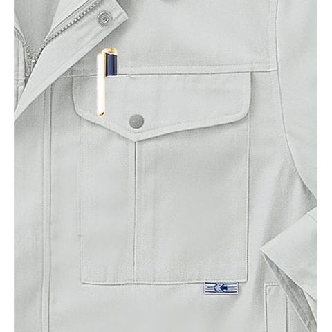抗菌・防臭加工(バイオシル加工)、制電、左胸ペン差し、左袖ペン差し、樹脂ファスナー、金属ボタン