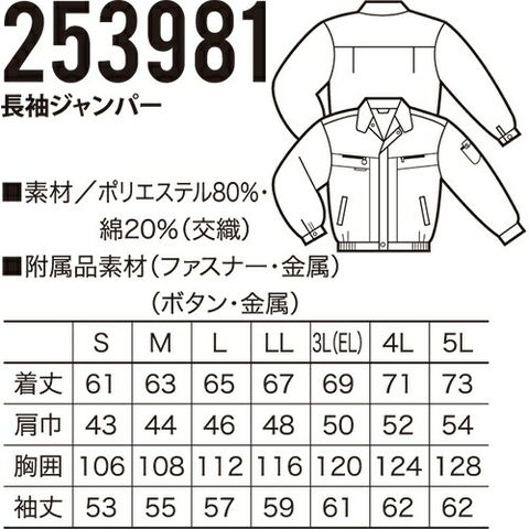 クロダルマ 253981 長袖ジャンパー 作業着 ワークウエア KURODARUMA
